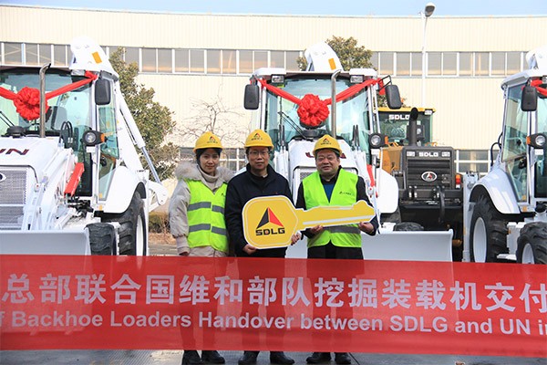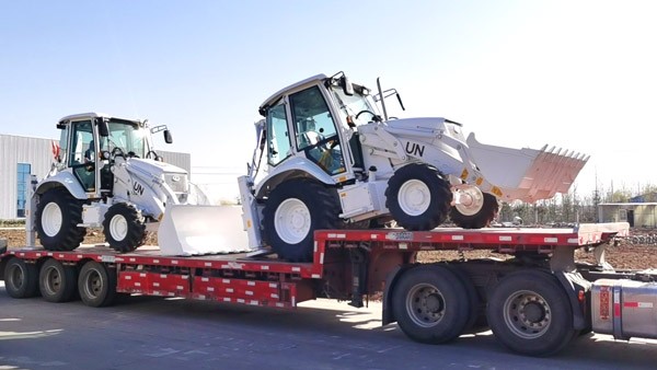 春暖花开时节,5台白色涂装并带有联合国UN标识的临工挖掘装载机,装车出发,踏上参与联合国维和任务的征程。