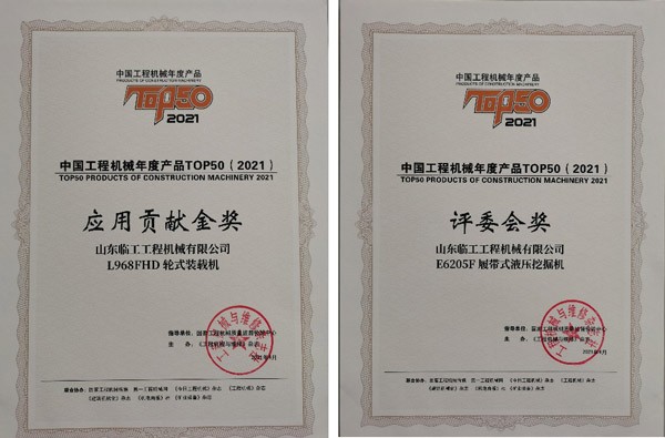 山东临工L968F HD装载机及E6205F挖掘机凭借优越的产品性能、丰富的工况应用和极高的产品可靠性在激烈的竞争中脱颖而出,以绝对优势斩获TOP50“应用贡献金奖”和“评委会奖”,充分展现了山东临工在创领行业创新和满足客户需求层面的非凡价值,彰显了临工品牌的可靠品质。