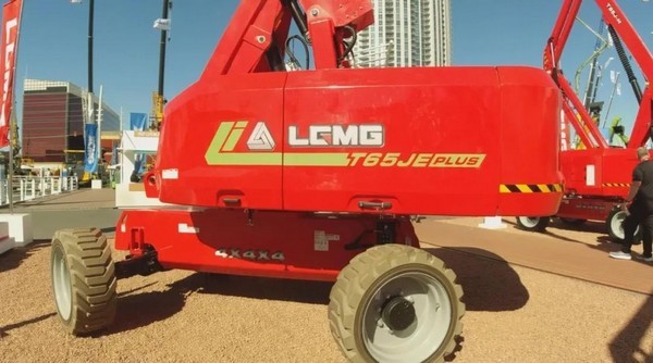特别值得一提的是,电动直臂车T65JE绝对是临工重机在本届展会上最耀眼的明星,通体红色的涂装,长长的直臂伸向高空,一面书写“LGMG”的大旗在美国拉展上空随风飘扬,也吸引很多行业客户和展会游客来到这款展品前驻足观摩。该电动直臂车采用绿色环保、低噪音、零排放、免维护大容量锂电池,还采用了中央集成桥驱传动,效率提升20%,能实现四轮驱动,四轮转向,全时浮动,保障车辆安全。另外,该平台产品所用四项技术被鉴定为国际先进,四轮转向自动对中技术已授权国家发明专利,线速度恒定控制技术也已申报发明专利,技术的创新提升了产品操作舒适性,提升了产品竞争力。