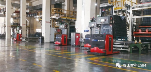 硬件:密炼区57台激光叉车AGV;