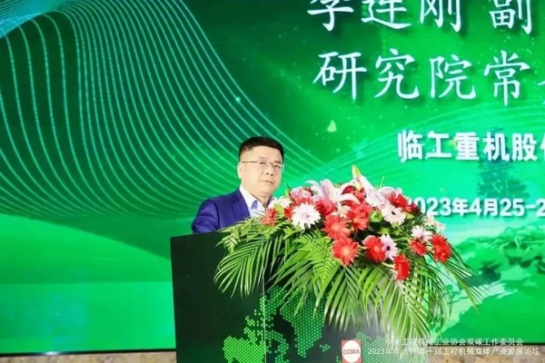 临工重机副总经理、研究院常务副院长李连刚在会上做《绿色低碳工程机械之路》主题报告,结合典型产品及应用案例,详细阐述了临工重机把握双碳战略机遇,在绿色低碳领域打造出的市场布局、系列产品、数字化工厂和服务体系。